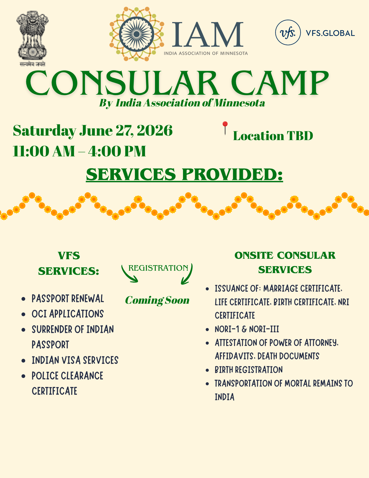 IAM is planning for a Consular Camp this year where we will host the officials from the Indian Consulate, Chicago.